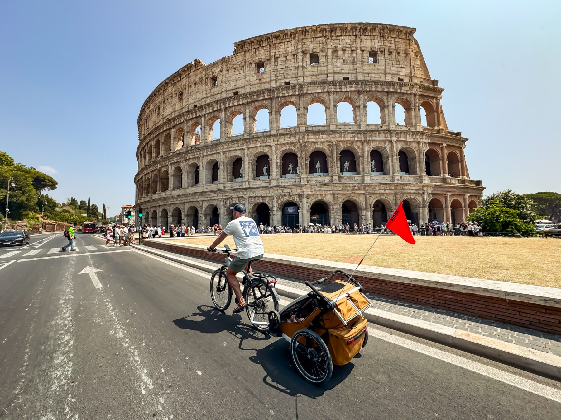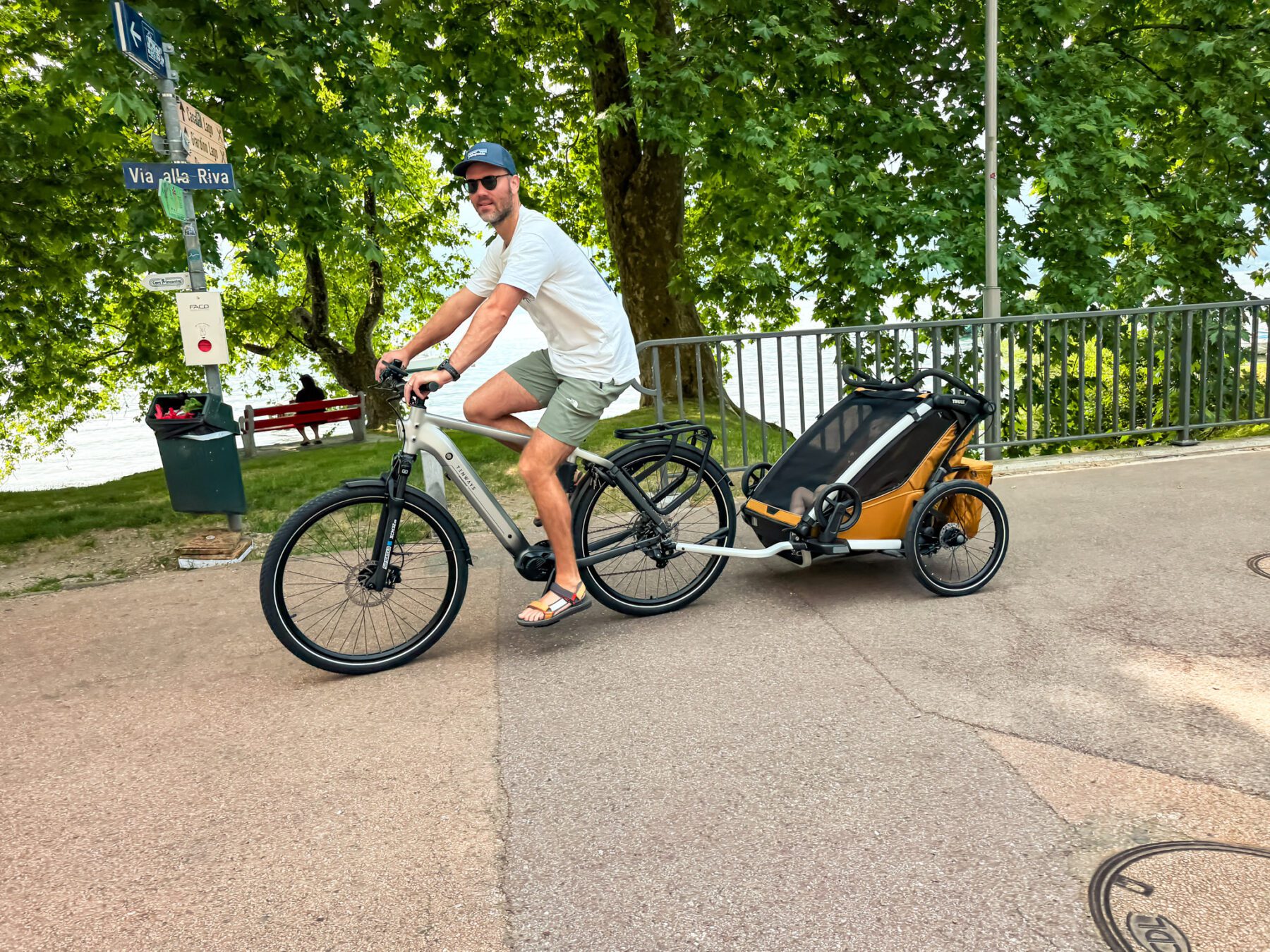 Als fietskar voelt de Sport 2 super solide. Je hebt het gevoel dat je met iets rijdt dat ontworpen is voor snelheid en controle. Ook bij wind, nat wegdek of hobbelige fietspaden blijft het allemaal rustig en voorspelbaar. De vering zorgt voor de kids achterin dat de rit heel smooth verloopt. Zorg er wel voor dat je de kar goed belast en maak hem niet te zwaar. Door verkeerd of te zwaar belasten, loop je (zoals wij) eerder kans op lekke banden. Let er wel op dat de Thule Chariot Sport 2 Double écht groot is. Wij namen hem mee door diverse Italiaanse steden en veel mensen zijn niet bekend met fietsers, laat staan een fietskar.
